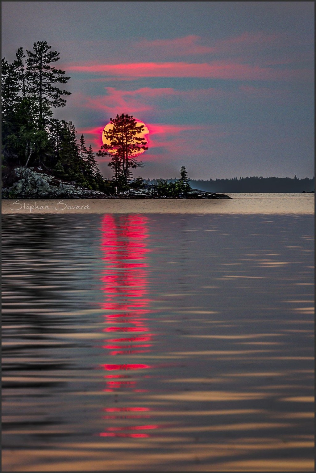 Red light highlights the horizon over the rippling waters