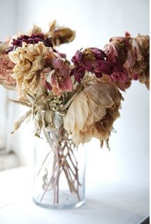 Dried crumpled flowers in a vase