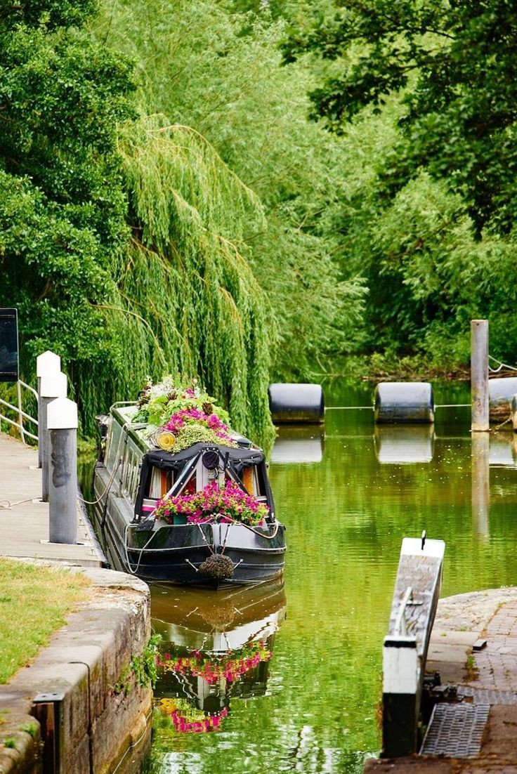 Along a canal in the summer,